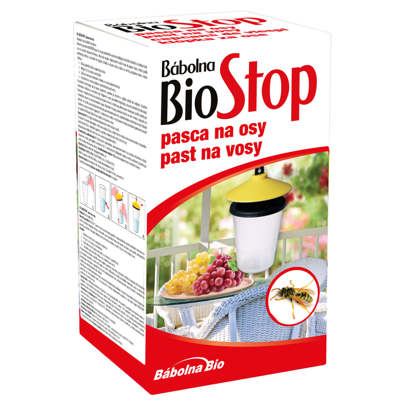 BioStop pasca na muchy, osy, ovady je použiteľná v potravinárskej prvovýrobe, skladoch, v domácnostiach na odchyt lietajúceho hmyzu. Návnada svojim odparovaním vábi hmyz do pasce. Pascu zložte podľa priloženej schémy a zakvačte do špajze, skladu, kuchyne alebo uložte na skriňu, prípadne iného miesta výskytu.